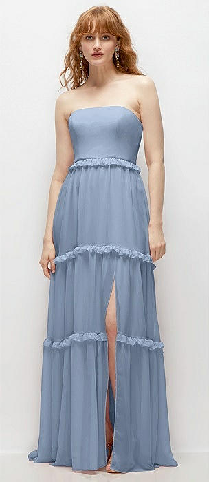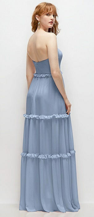 Strapless Chiffon Maxi Dress with Tiered Micro Ruffle Full Skirt in cloudy