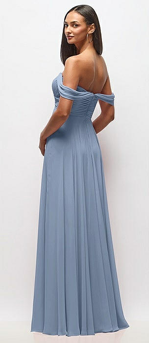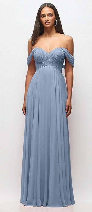 Off-the-Shoulder Draped Chiffon Maxi Dress in cloudy