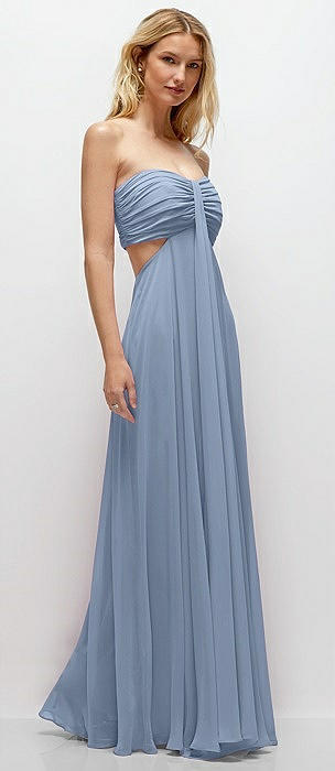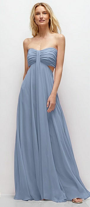 Strapless Empire Waist Cutout Maxi Dress with Covered Button Detail in cloudy