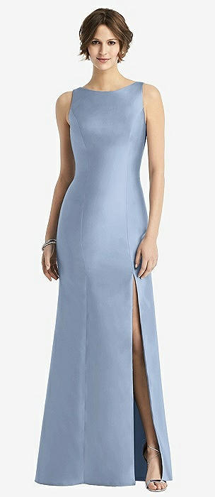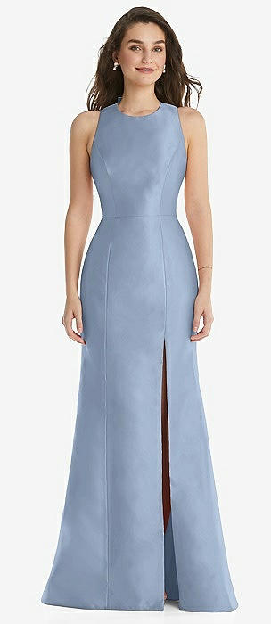 Jewel Neck Bowed Open-Back Trumpet Dress with Front Slit in cloudy