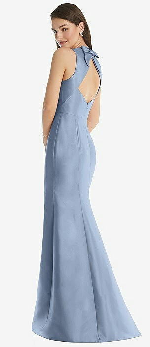 Sleeveless Satin Trumpet Gown with Bow at Open-Back in cloudy