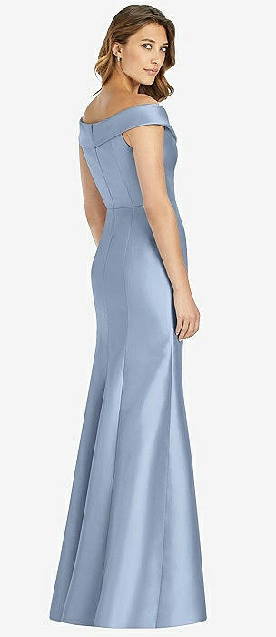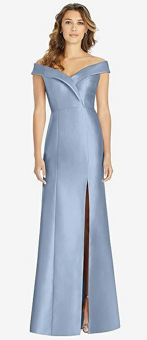 Off-the-Shoulder Cuff Trumpet Gown with Front Slit in cloudy