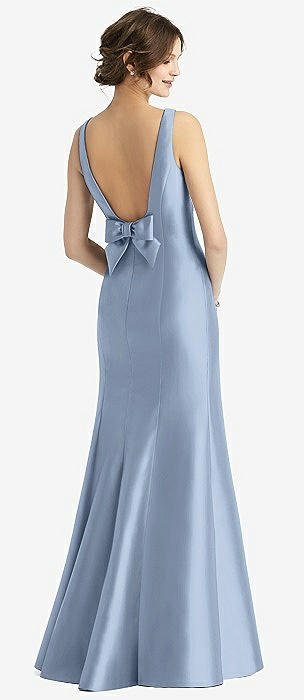 Sleeveless Satin Trumpet Gown with Bow at Open-Back in cloudy