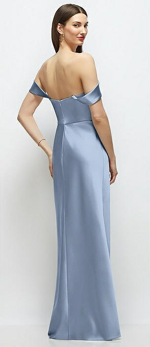 Off-the-Shoulder Cuff Trumpet Gown with Front Slit in cloudy