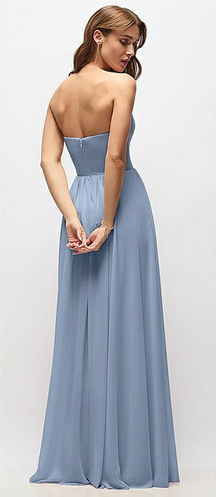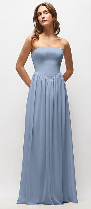 Strapless Basque Drop Waist Chiffon Maxi Dress with Shirred Skirt in cloudy