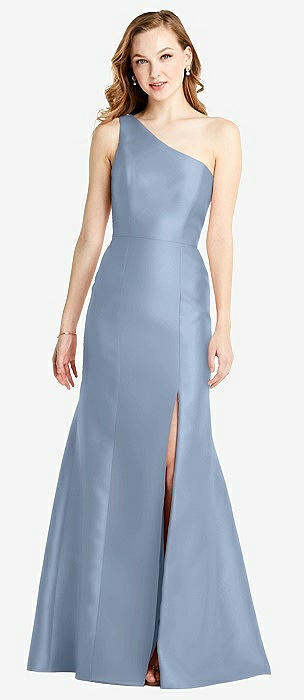 One-Shoulder Satin Maxi Dress with Chic Oversized Shoulder Bow in cloudy