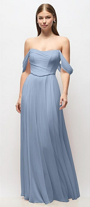 Off-the-Shoulder Basque Corset Chiffon Maxi Dress in cloudy