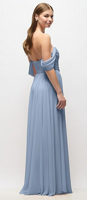 Chiffon Corset Maxi Dress with Removable Off-the-Shoulder Swags in cloudy
