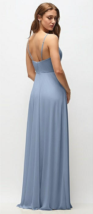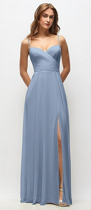 Wrap Bodice Chiffon Maxi Dress with Adjustable Spaghetti Straps in cloudy