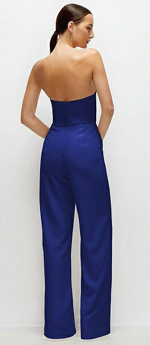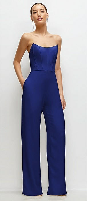 Strapless Cat-Eye Corset Crepe Wedding Jumpsuit in cobalt blue