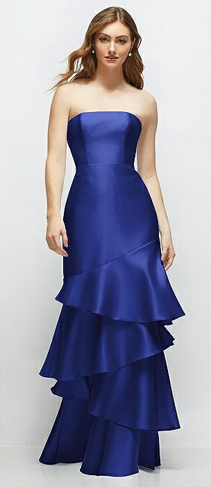 Strapless Bodycon Maxi Dress with Tiered Ruffle Skirt in cobalt blue