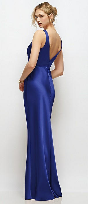 Scoop Neck Draped Column Stretch Satin Maxi Dress in cobalt blue