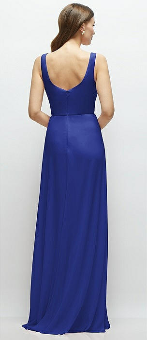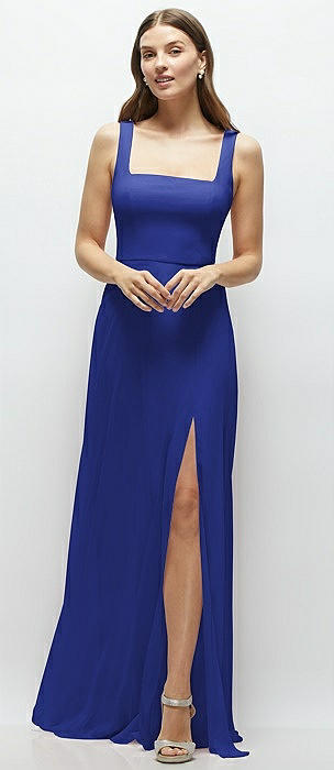 Square Neck Chiffon Maxi Dress with Circle Skirt in cobalt blue