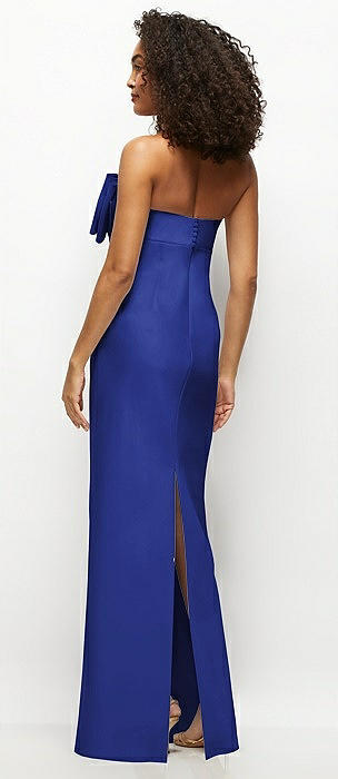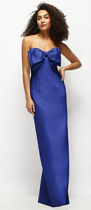 Strapless Satin Column Maxi Dress with Oversized Handcrafted Bow in cobalt blue