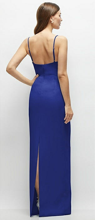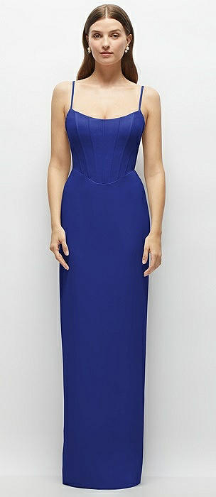 Corset-Style Crepe Column Maxi Dress with Adjustable Straps in cobalt blue