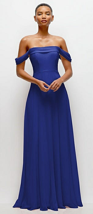 Off-the-Shoulder Draped Neckline Maxi Dress in cobalt blue