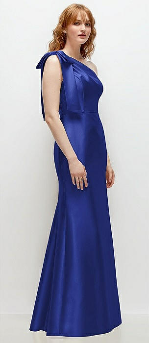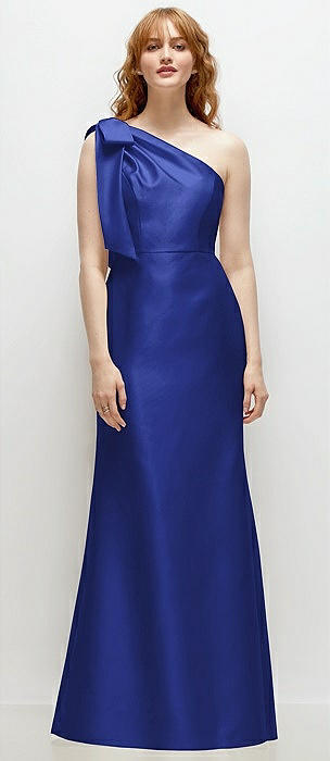 Bow One-Shoulder Satin Trumpet Gown in cobalt blue