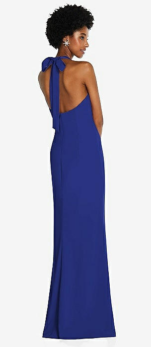 Tie Halter Open Back Trumpet Gown in cobalt blue