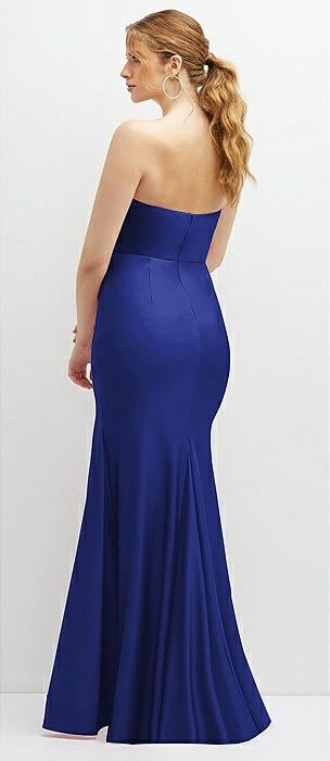 Strapless Basque-Neck Draped Stretch Satin Mermaid Dress with Horsehair Hem in cobalt blue