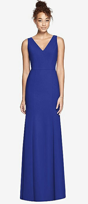 Sleeveless Satin Trumpet Gown with Bow at Open-Back in cobalt blue
