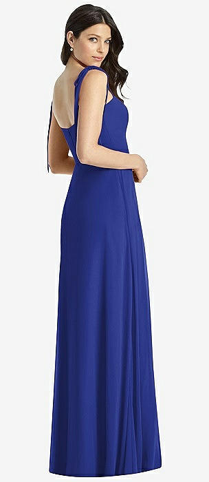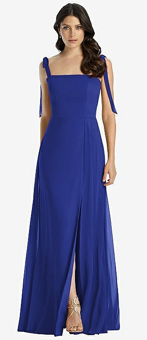 Tie-Shoulder Chiffon Maxi Dress with Front Slit in cobalt blue