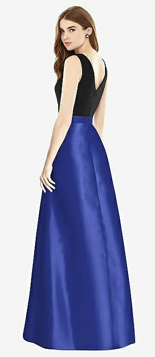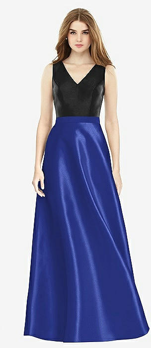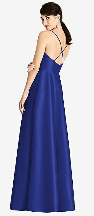 V-Neck Full Skirt Satin Maxi Dress in cobalt blue