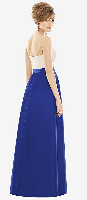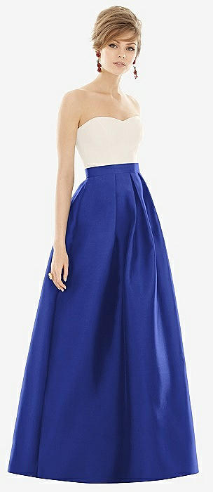 Strapless Pleated Skirt Maxi Dress with Pockets in cobalt blue