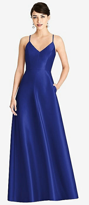 Sleeveless A-Line Satin Dress with Pockets in cobalt blue