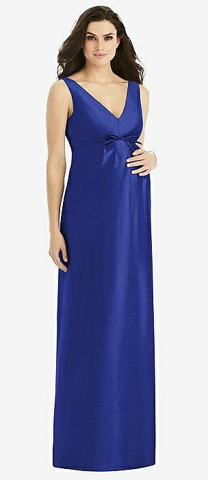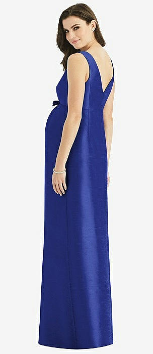 Sleeveless Satin Twill Maternity Dress in cobalt blue