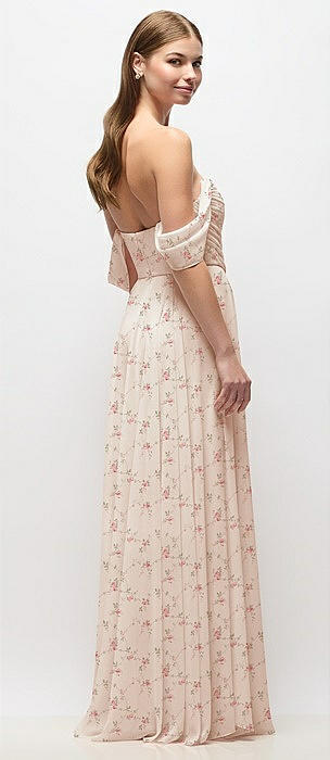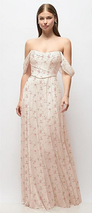 Chiffon Corset Maxi Dress with Removable Off-the-Shoulder Swags in coquette floral print