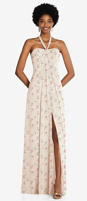 Diamond Halter Maxi Dress with Adjustable Straps in coquette floral print