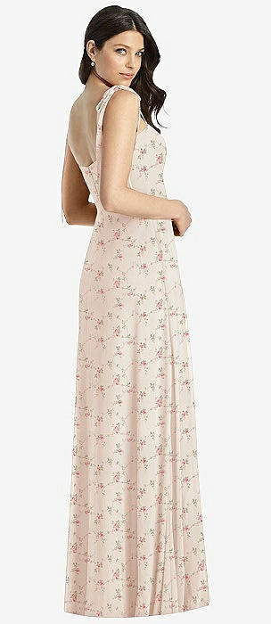 Tie-Shoulder Chiffon Maxi Dress with Front Slit in coquette floral print