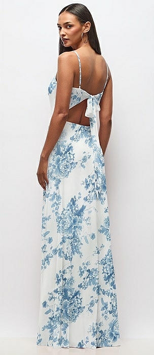 Tie-Back Cutout Maxi Dress with Front Slit in cottage rose dusk blue