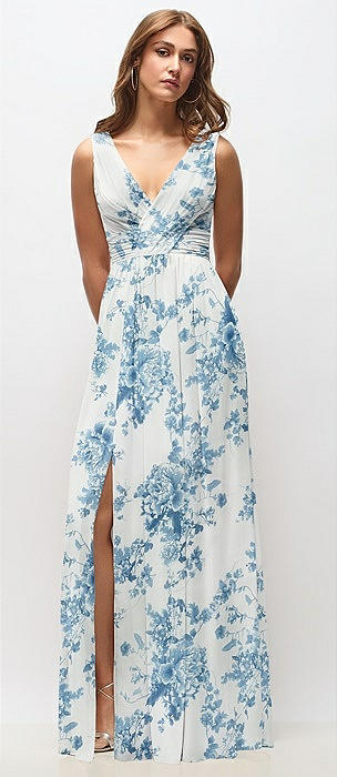 Sleeveless Draped Chiffon Maxi Dress with Front Slit