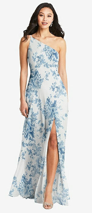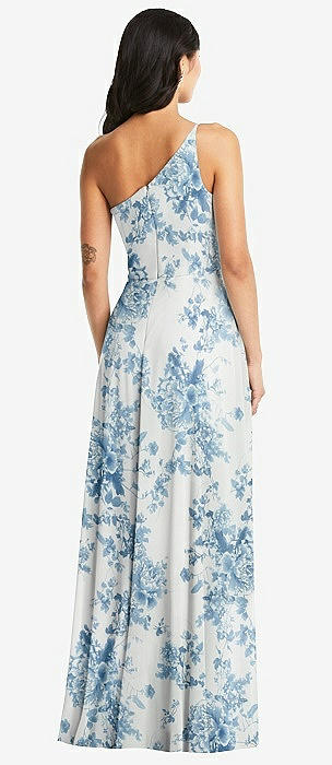 One-Shoulder Draped Chiffon Maxi Dress - Dani in cottage rose dusk blue