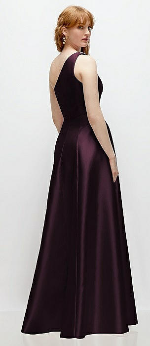 Bow One-Shoulder Satin Trumpet Gown in deep plum