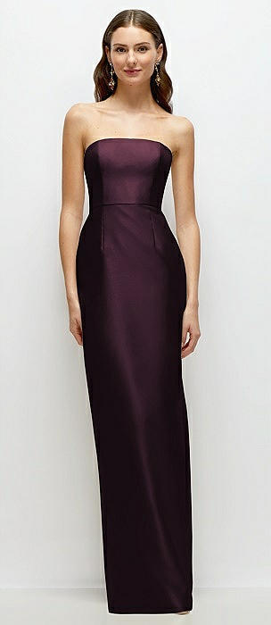 Strapless Satin Column Dress with Back Slit in deep plum