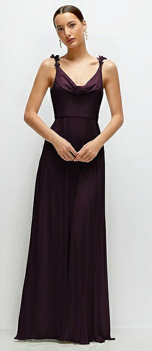 Cowl Neck Chiffon Maxi Dress with Hand-Worked Petal Straps in deep plum