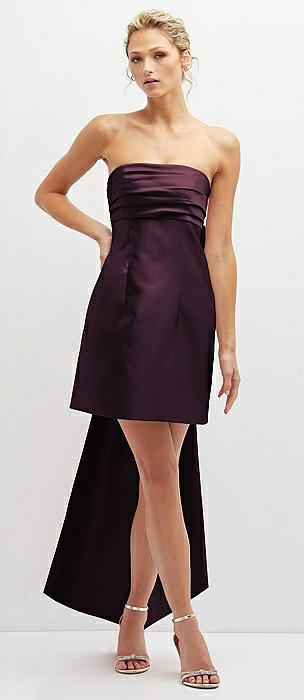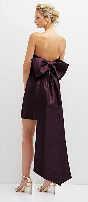 Strapless Satin Column Mini Dress with Oversized Bow in deep plum
