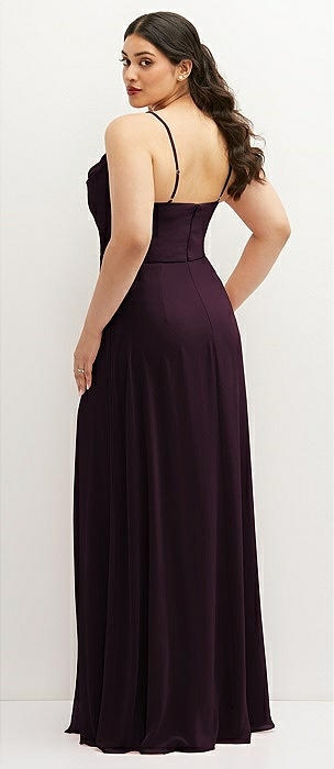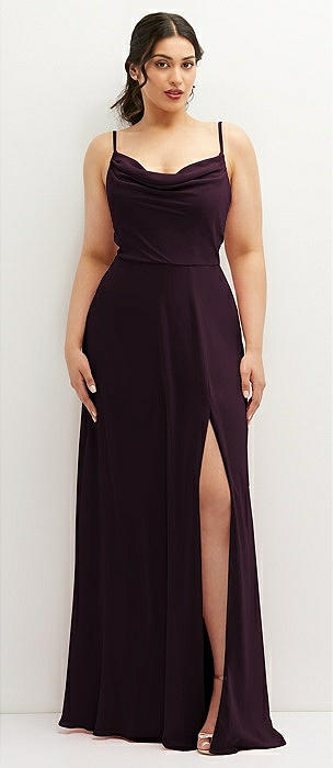 Soft Cowl-Neck A-Line Maxi Dress with Adjustable Straps in deep plum