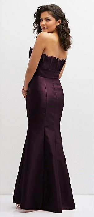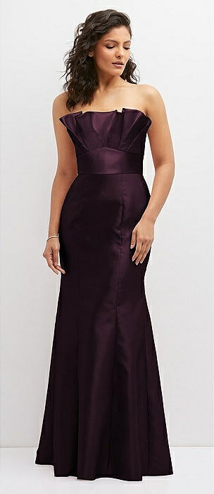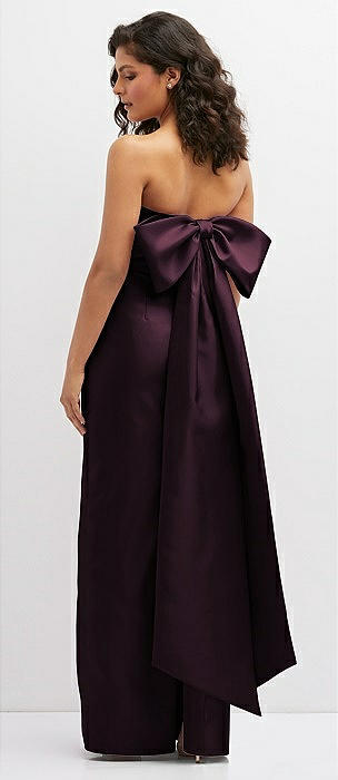 Strapless A-line Satin Gown with Modern Bow Detail in deep plum