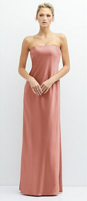 Strapless Maxi Bias Column Dress with Peek-a-Boo Corset Back in desert rose