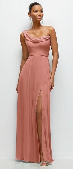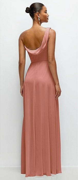 Chiffon One-Shoulder Maxi Dress with Draped Cowl Neckline in desert rose
