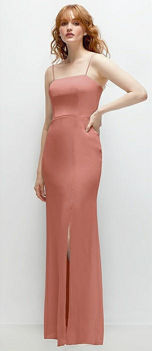 Tie-Back Cutout Trumpet Gown with Front Slit in desert rose