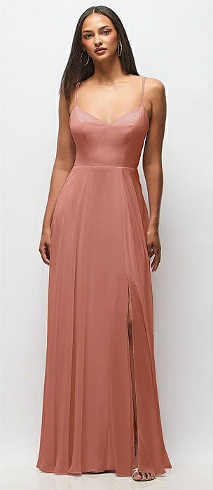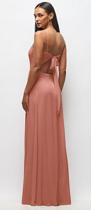 Cowl Neck Criss-Cross Back Satin Maxi Dress in desert rose