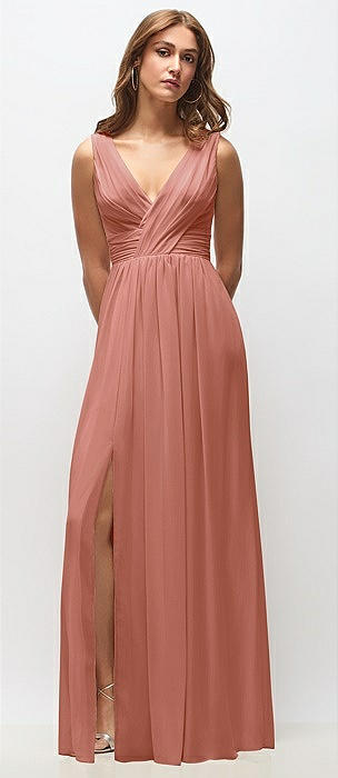 Sleeveless Draped Chiffon Maxi Dress with Front Slit in desert rose