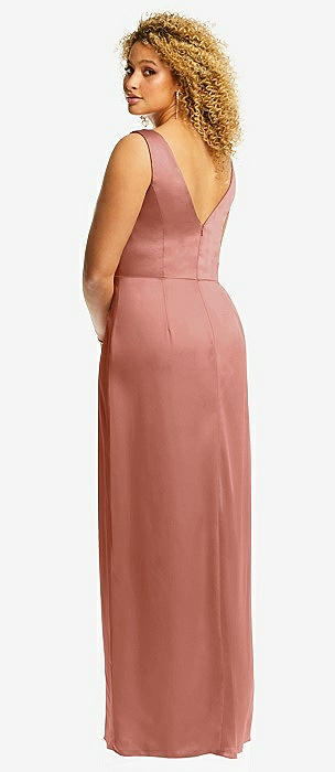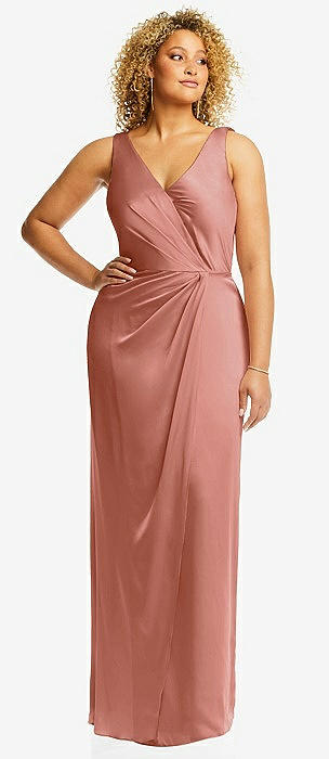 Faux Wrap Whisper Satin Maxi Dress with Draped Tulip Skirt in desert rose