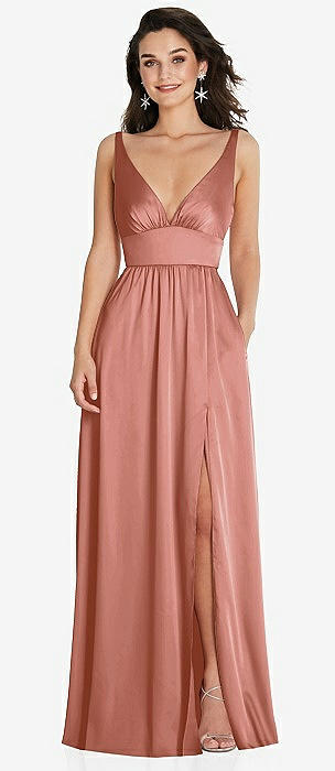 Deep V-Neck Shirred Skirt Maxi Dress with Convertible Straps