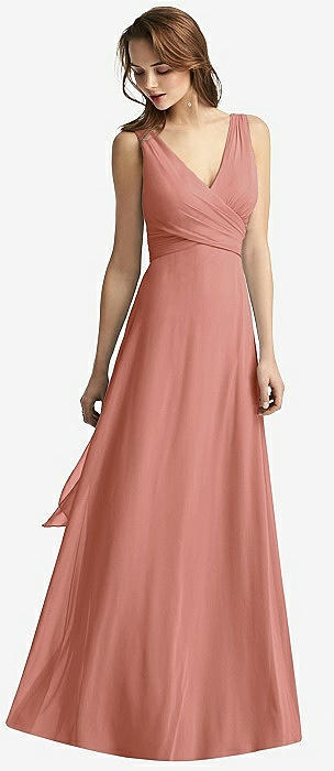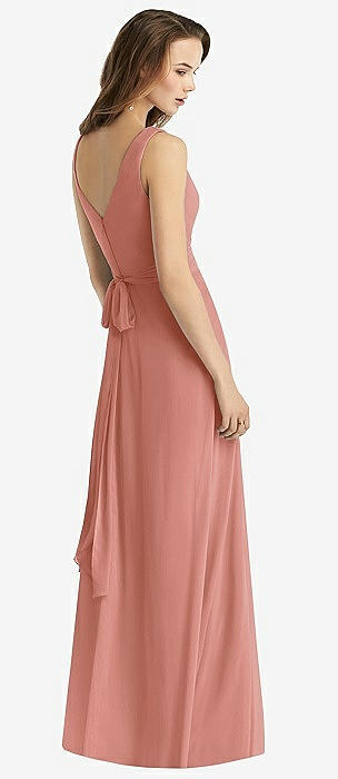 Sleeveless V-Neck Chiffon Wrap Dress in desert rose