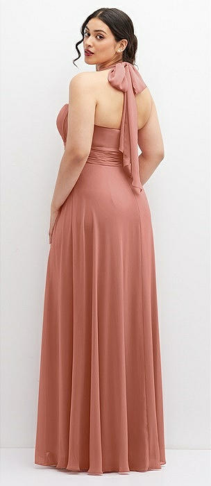 Draped Chiffon Grecian Column Gown with Convertible Straps in desert rose